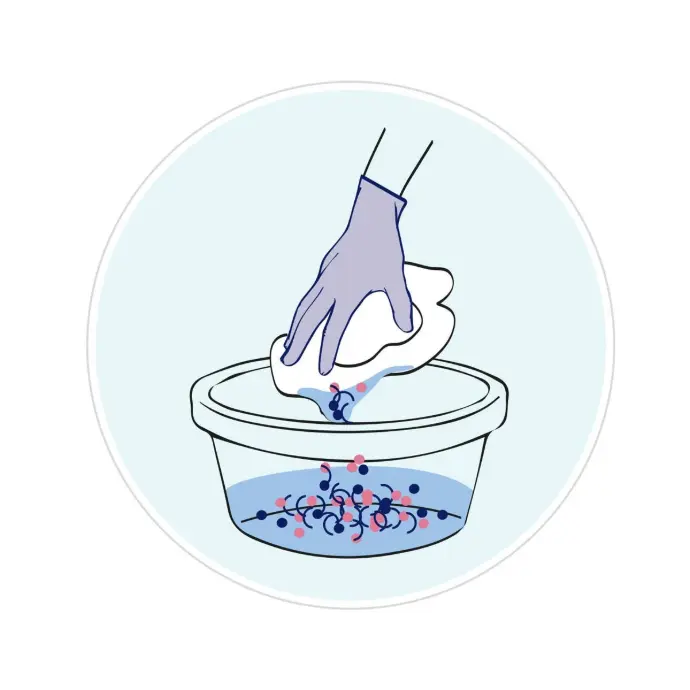 Mit den dicken, großformatigen Tüchern und Handschuhen lassen sich verschmutzte Bereiche leicht reinigen. Weiche, mit Naturfasern* angereicherte Materialien sind sanft und weniger reizend für die Haut.